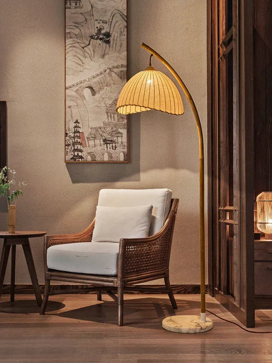 Vintage pleated fabric standing floor lamp