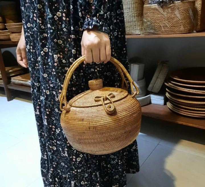 The pot-style rattan handbag is not just an accessory; it's a versatile, trendy, and eco-friendly option for those wanting to elevate their everyday and seasonal style. Whether you're hanging out with friends, preparing for a beach getaway, or seeking a chic addition to complement your summer wardrobe, this rattan handbag has you covered with its distinct combination of fashion, practicality, and eco-consciousness.