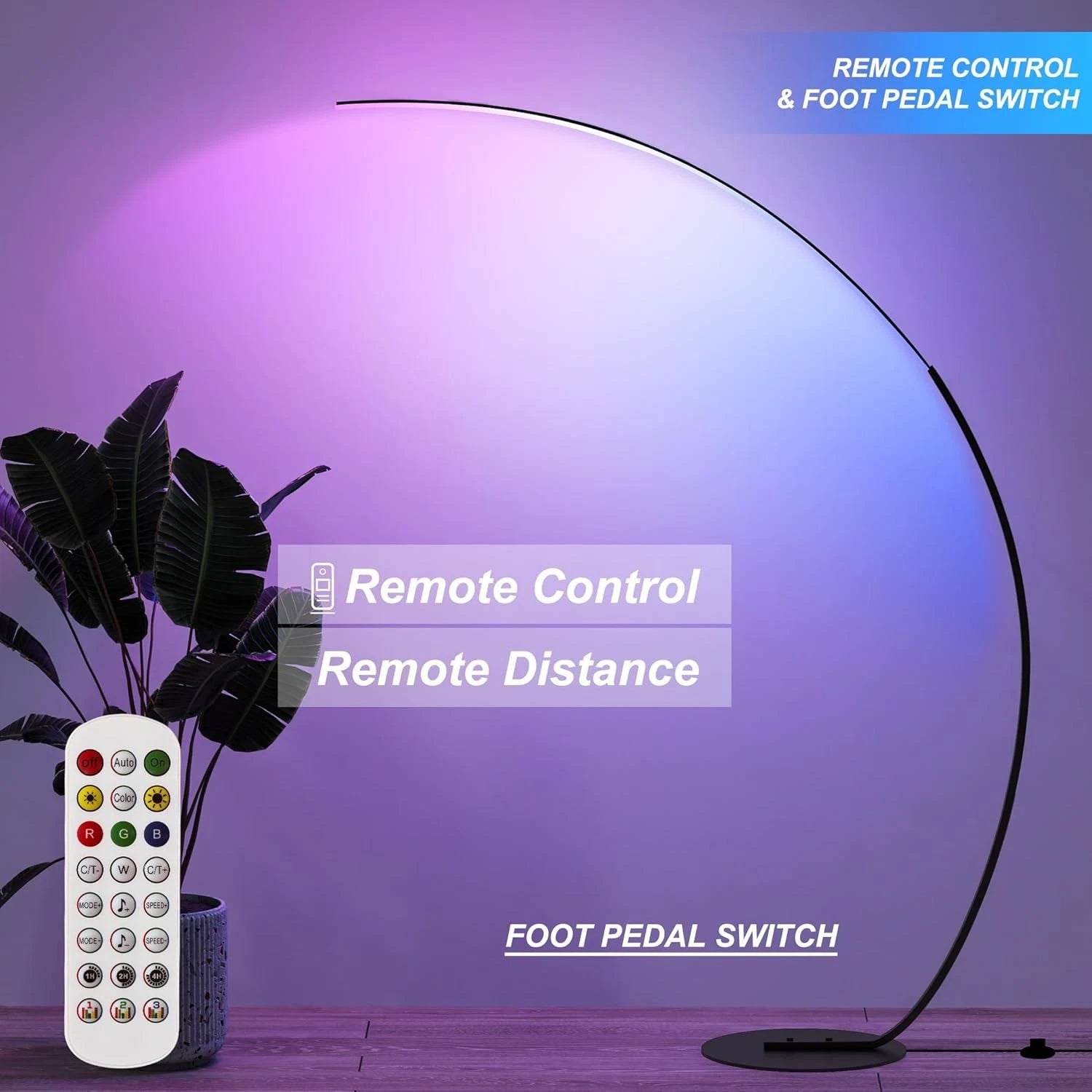 Introduce modern lighting with this curved floor lamp arc that blends advanced technology with minimalist design. This black floor lamp features dual light systems — a soft white LED and a dynamic RGBW color spectrum with 258 effects — making it the ideal arc floor lamp for living room spaces, bedrooms, and reading corners. Built for modern floor lamps setups, this unit includes Bluetooth connectivity, a remote, foot pedal control, and app-based smart functions.