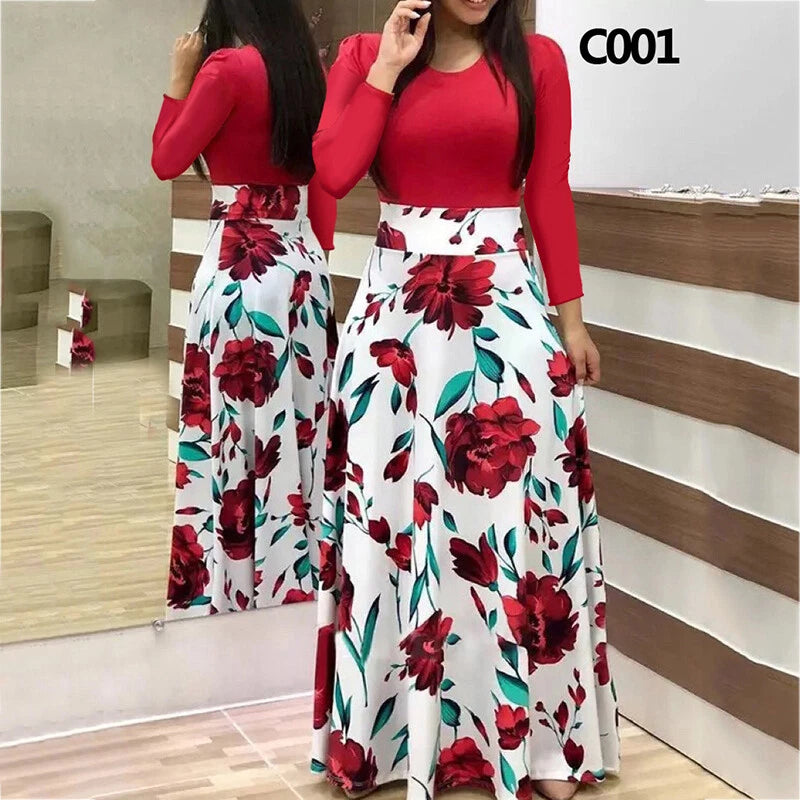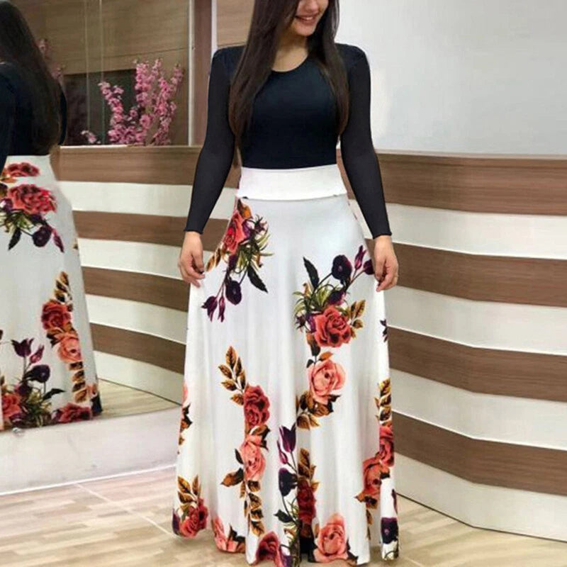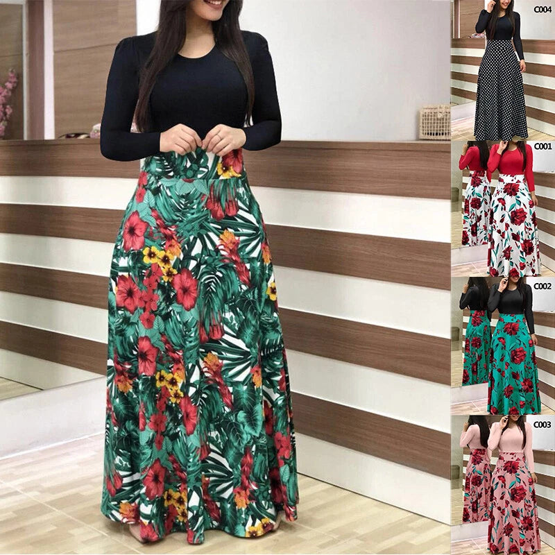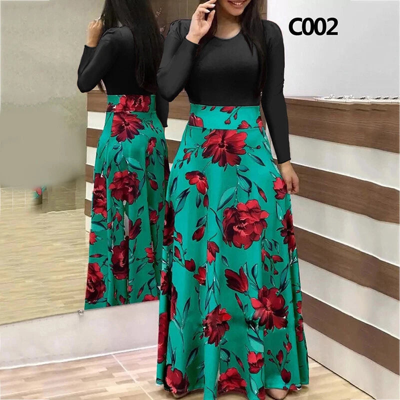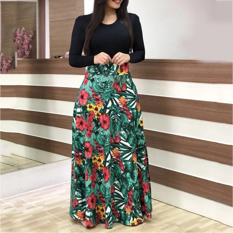 If you're looking for a summer maxi dress for women that blends easy comfort with vibrant seasonal prints, this dress checks all the boxes. Designed with a long sleeve, solid top and a printed tropical skirt, this casual party maxi dress with tropical print is ideal for laid-back events, weekend getaways, or an easy beach dinner outfit. The slip-on design with an elastic waistband makes it simple to wear without fuss, while the crew neck and full sleeves make it appropriate for spring and cooler nights.
