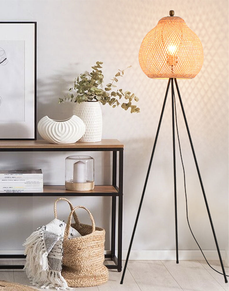 - Modern boho bamboo floor lamps blend seamlessly with neutral palettes and wood floors