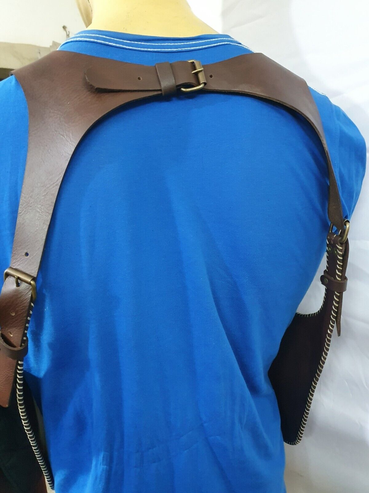 The brown leather shoulder holster bag is crafted with precision and attention to detail. Made from high-quality leather, it boasts durability and a timeless look. The design features adjustable straps to ensure a comfortable fit for different body types, making it a perfect accessory for both men and women.