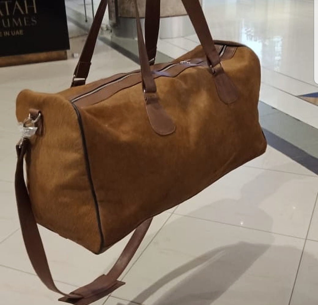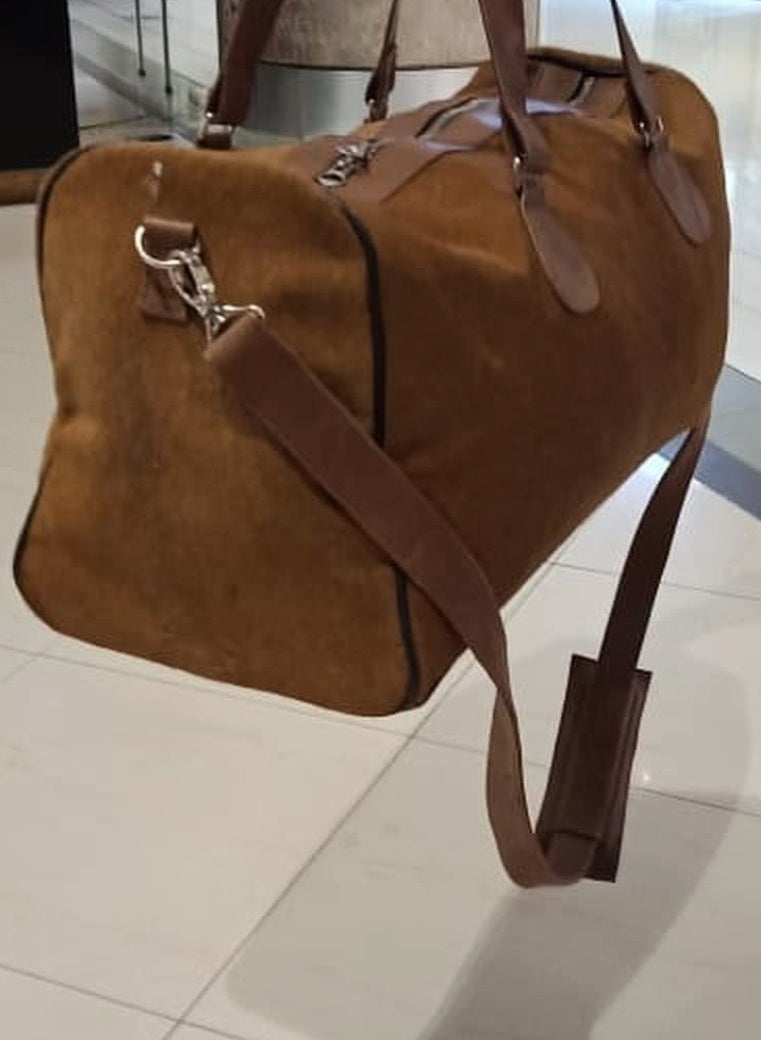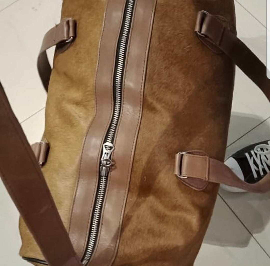 One of its kind brown cow hair luggage bag.