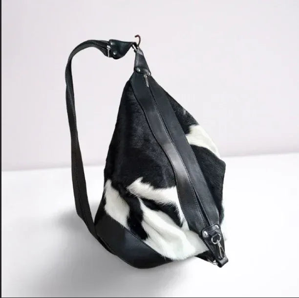 Calf hair shoulder bag – genuine cowhide handbag with natural hair leather finish