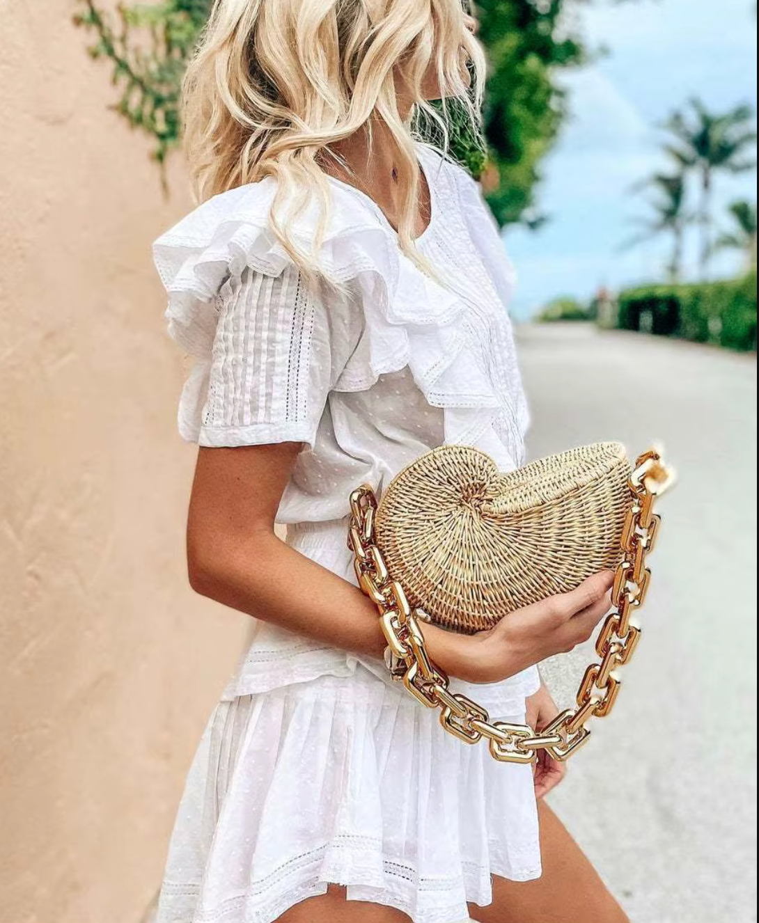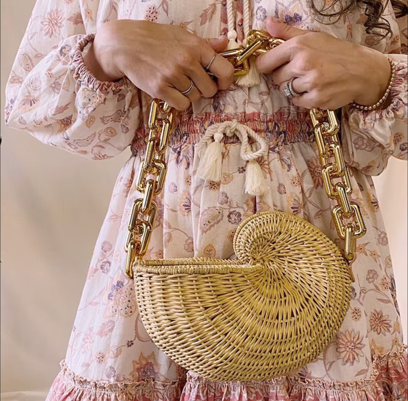 Straw Purses for Summer – Conch Shell Straw Shoulder Bag with Acrylic Chain