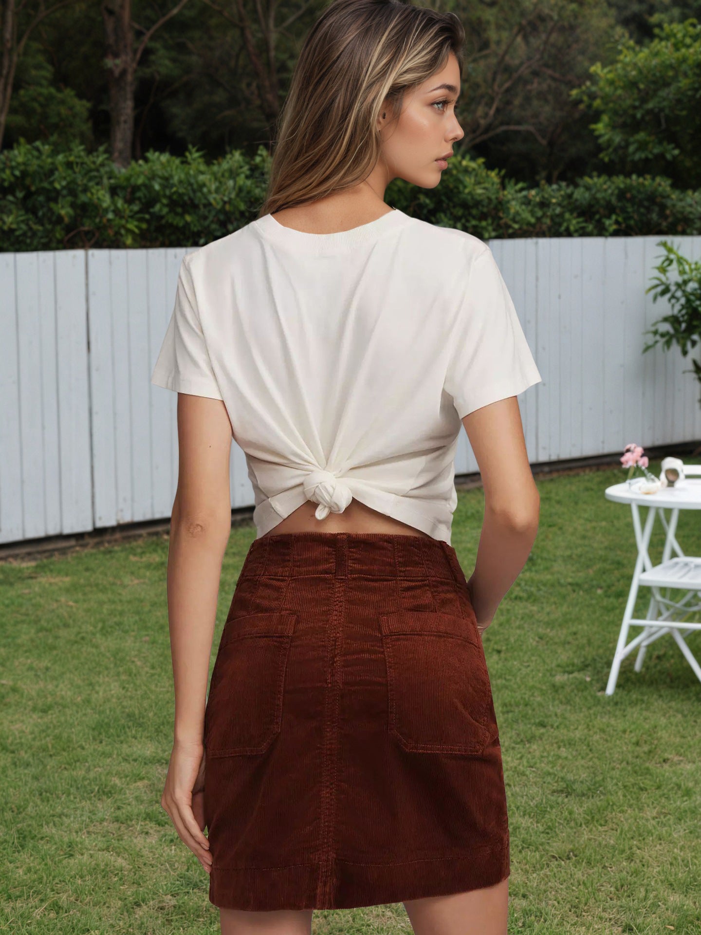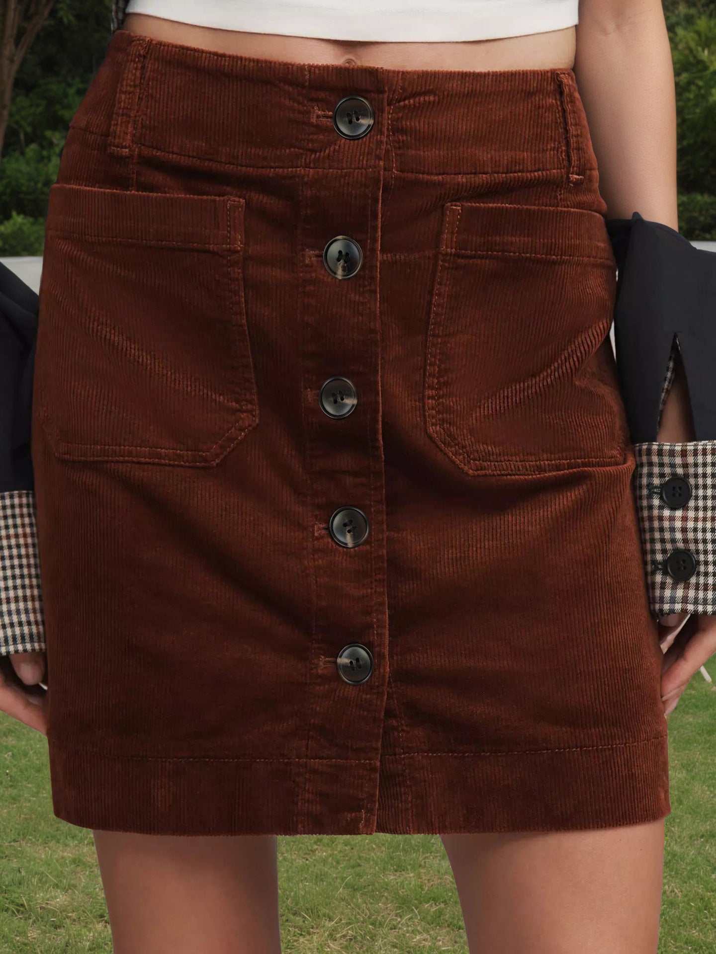Corduroy Mini Skirt Women Button Front High Waist Brown