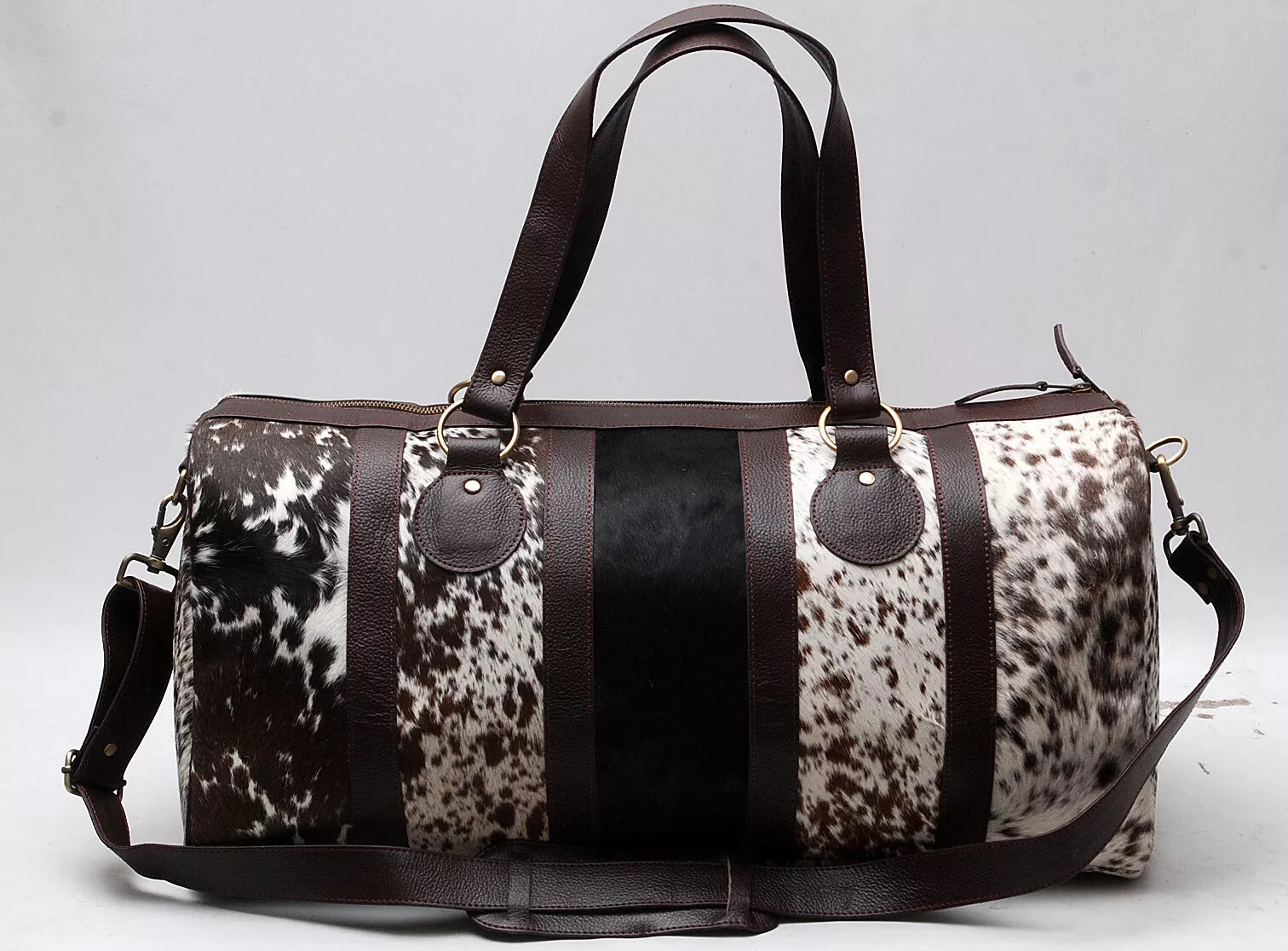 Cow Print Cowhide Bag with Deep Leather Accents