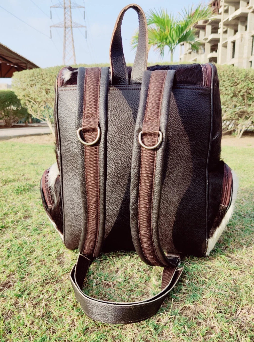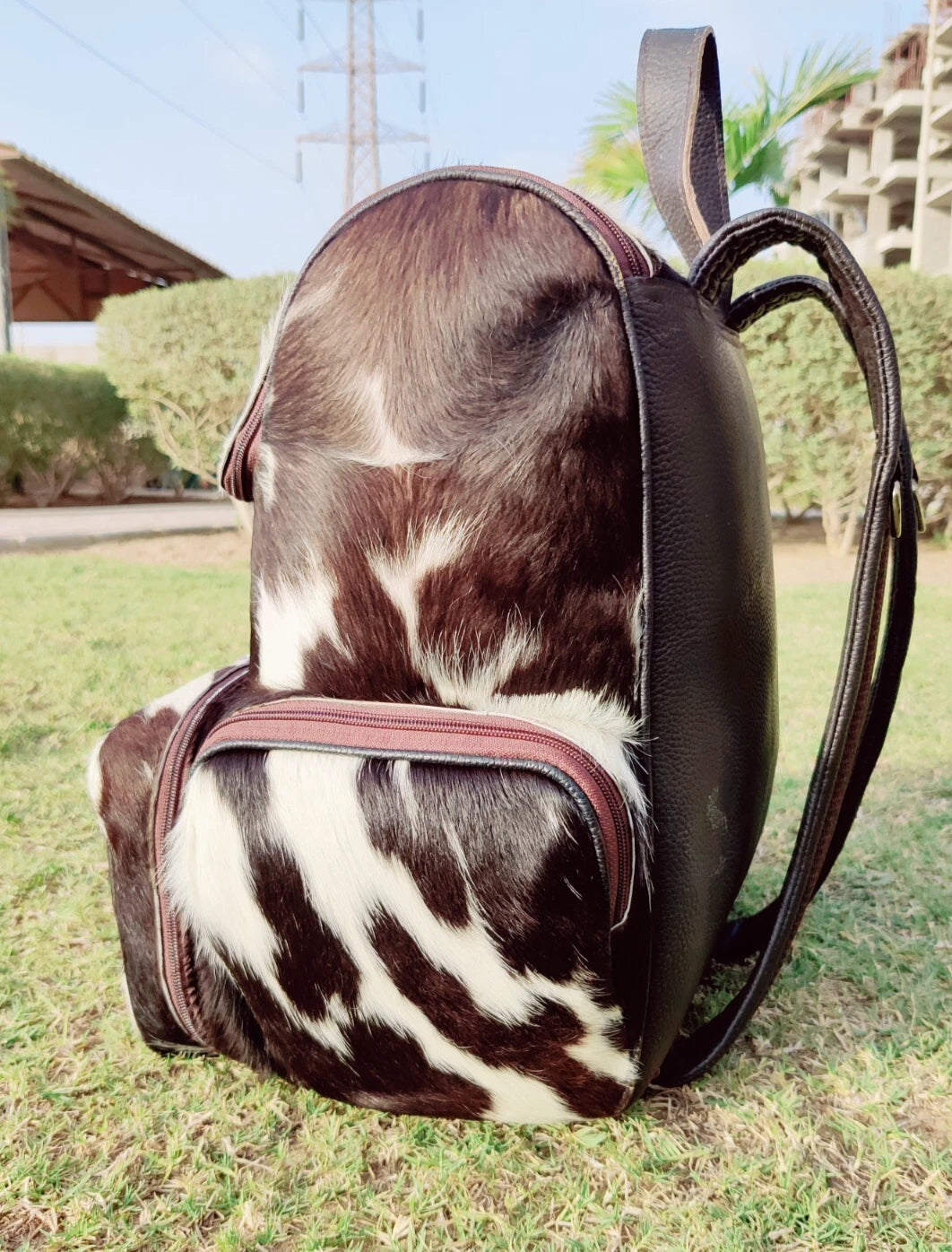- Unique tricolor pattern ensures every cowhide backpack is one-of-a-kind