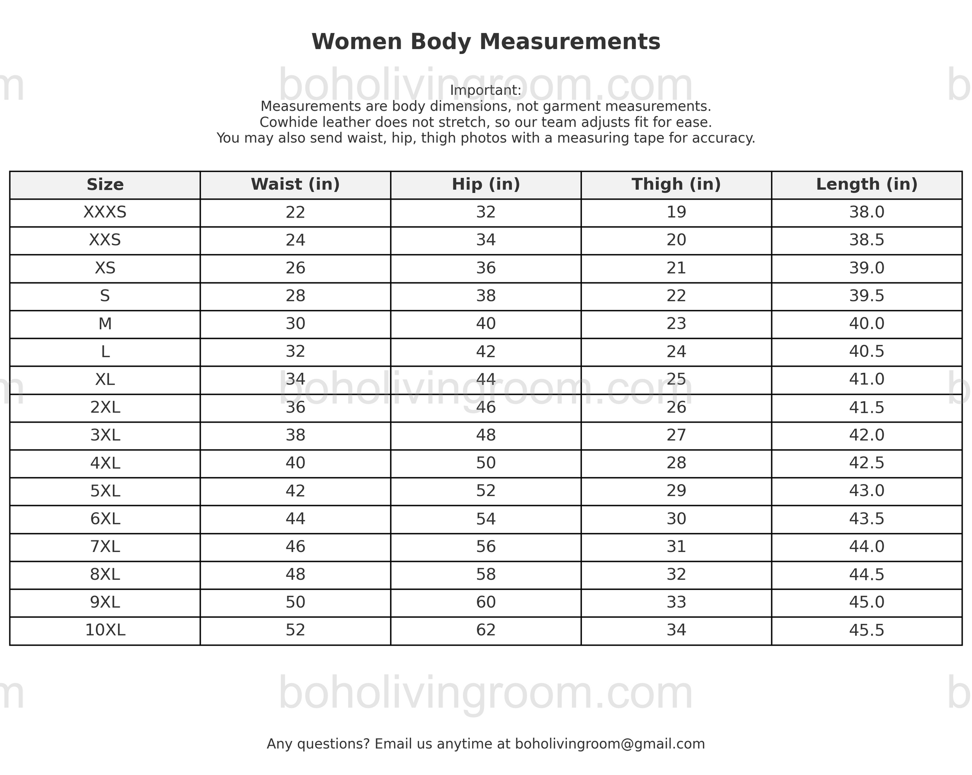 - If you can't find your size, choose “custom” for tailor-made women cowhide pants