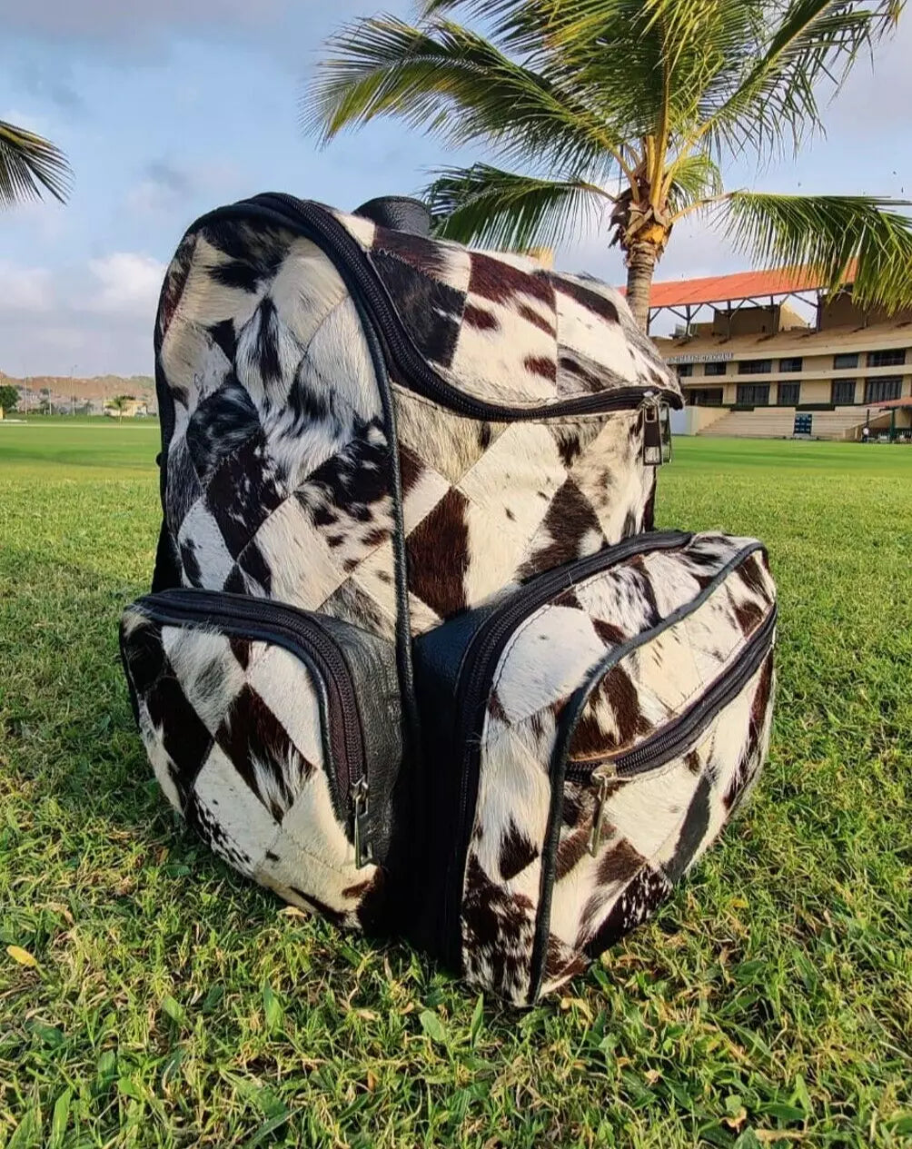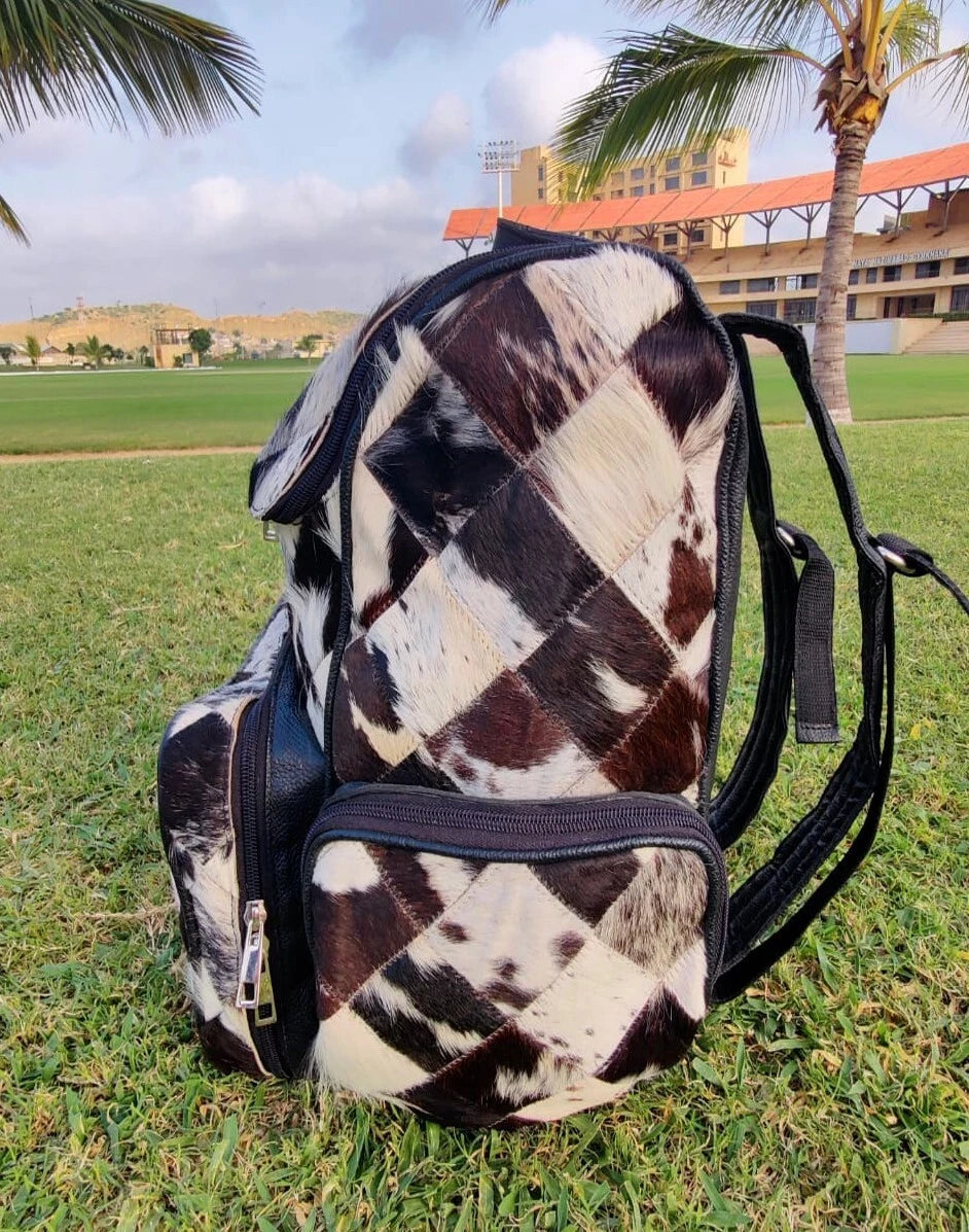 Cowhide Rucksack with Tri-Color Fur – Handmade Cow Skin Travel Bag for Moms and Daily Use
