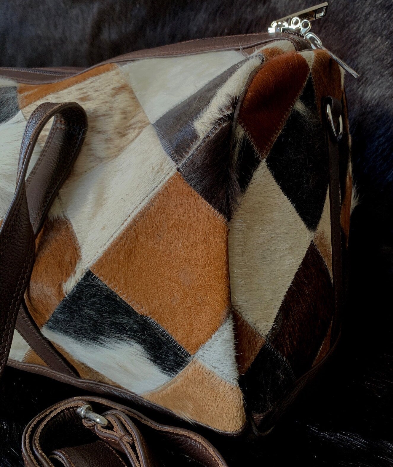 Whether you’re headed on an overnight journey, or taking a long vacation, this stylish and functional piece of cowhide luggage will be sure to turn heads. Crafted with 100% genuine leather and cowhide in a patchwork design, this luxurious holdall features two carry handles and an adjustable shoulder strap for easy carrying. The spacious interior makes it ideal for carrying all your essentials while on the go; with external pockets to store any items you need quick access to. Ideal for adding a touch of sophistication to your weekend wardrobe or everyday look, this beautiful tricolor duffel bag is the perfect choice for any traveler looking for something special.