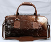 This stunning custom-made weekender bag is crafted from natural cowhide in a unique dark brown black pattern. Enhance your style with this beautiful and timeless piece!