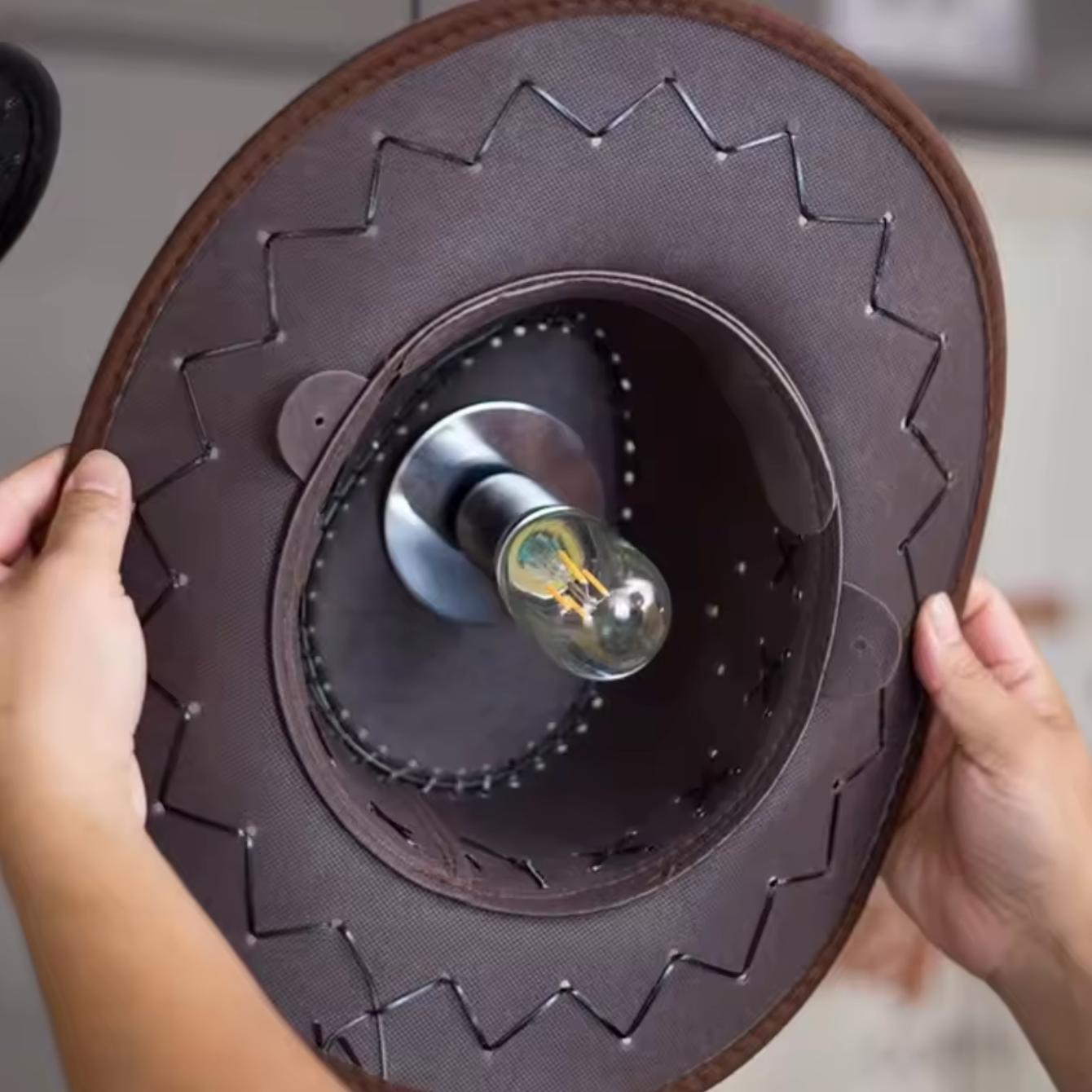 Bring western character into your space with this cowboy chandelier pendant lamp, a rustic ceiling light designed for restaurants, farmhouse dining rooms, and themed cafés. The creative cowboy hat shape delivers both illumination and personality, making it an eye-catching chandelier for homestays, bars, and kitchens. Each western cowboy hat ceiling chandelier light fixture is made with premium cloth material and detailed stitching for a true rustic look. The farmhouse rustic cowboy pendant lamp for dining room creates a warm, inviting glow that transforms everyday lighting into a centerpiece of style.