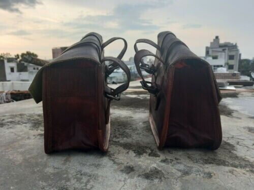 Crafted from premium quality leather, these dark brown saddle bags exude an air of sophistication that complements any motorcycle. The rich color adds depth and character to your bike, creating an eye-catching contrast against its sleek metal frame. Whether you're cruising down the highway or parked at a café, these saddle bags are bound to make a statement and set you apart from the crowd.