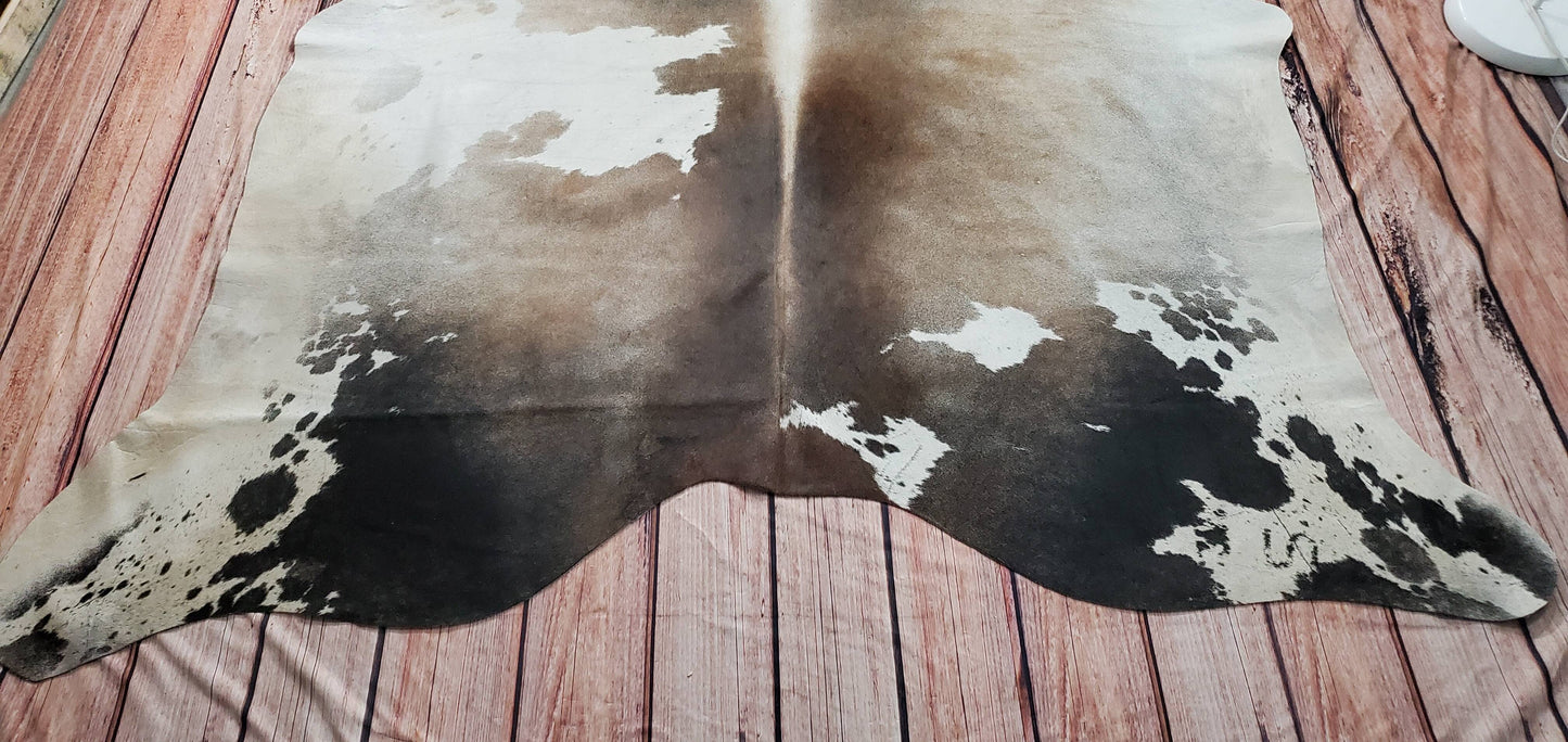 Add a touch of rustic charm to your home with this dark grey tricolor cowhide rug. Its natural patterns and rich hues create a stunning focal point for any room.