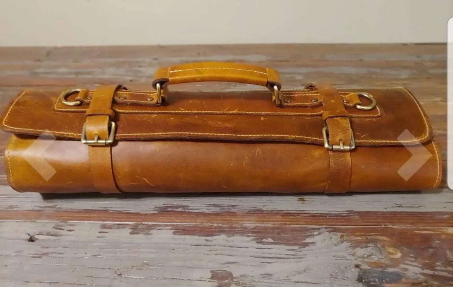 Leather knife roll carrier bag for chefs – handmade leather knife storage travel case