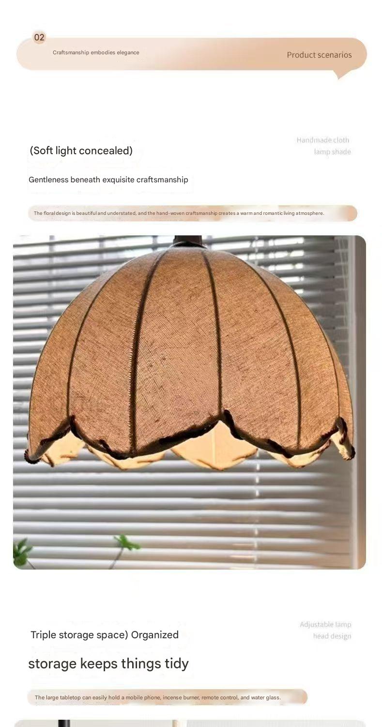 • Cotton and linen fabric lampshade with scalloped edge for soft ambient glow