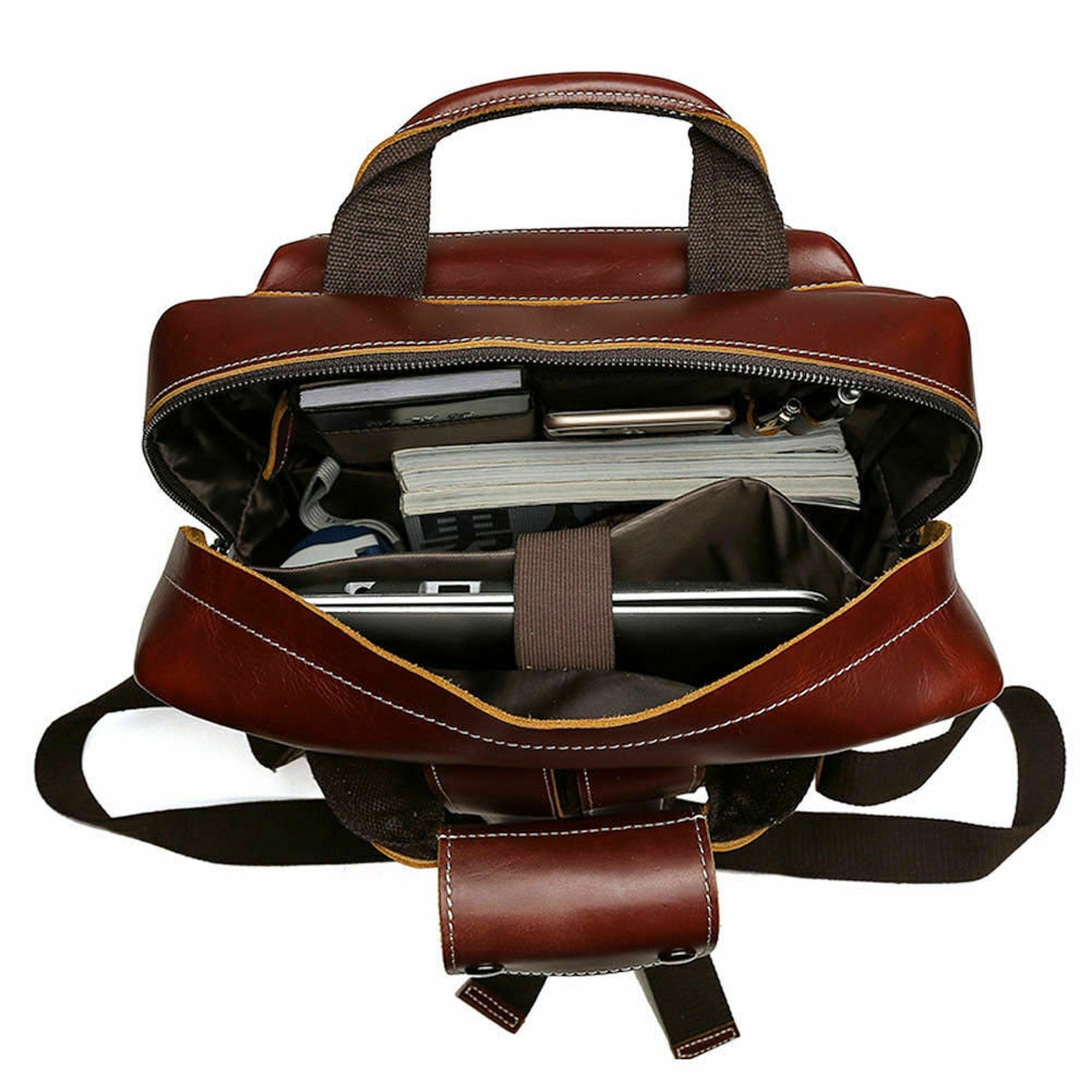 The leather laptop backpack boasts a roomy interior, making it suitable for carrying everything from work essentials to gym clothes. With ample space, you can neatly store your laptop, notebooks, chargers, or personal items without feeling cramped. This spacious design ensures you can tackle your daily routine with everything you need at hand.