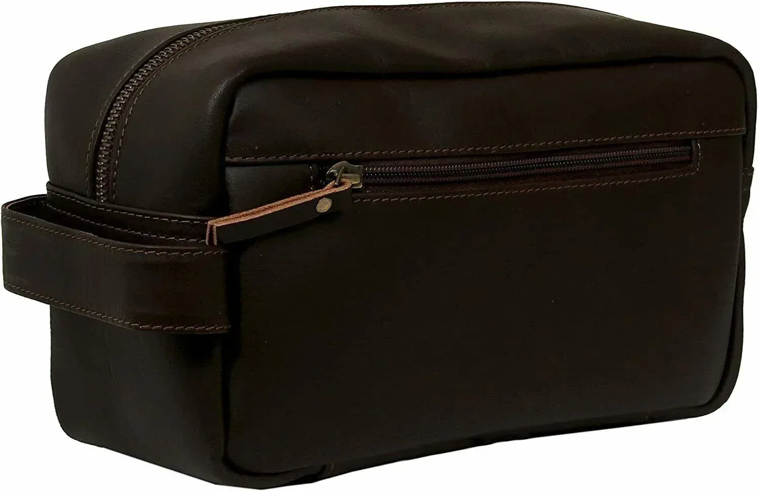 Genuine Leather Mens Toiletry Bag Dark Travel Organizer