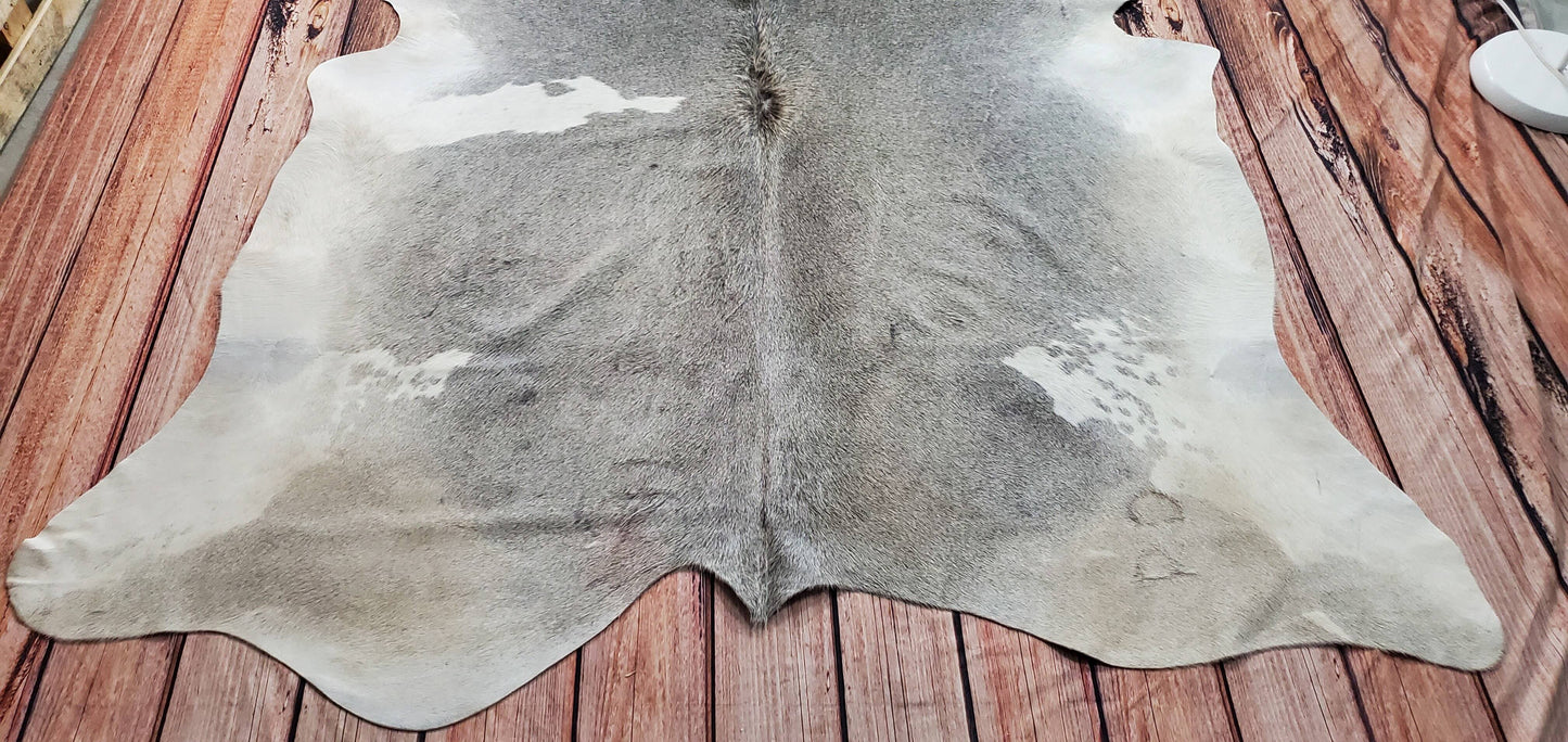 Genuine Grey White Cowhide Rug 6.5ft x 6.1ft