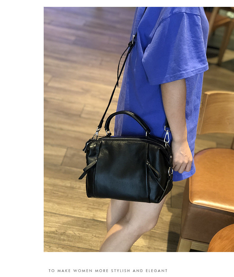 Premium Cowhide Leather Shoulder Bag for Women with Retro Design and Crossbody Strap