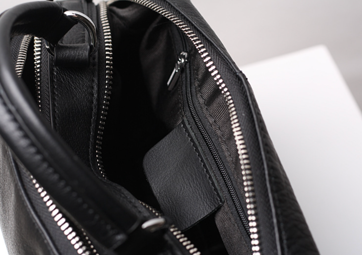 • Smooth silver-tone zipper closure across the top for secure storage