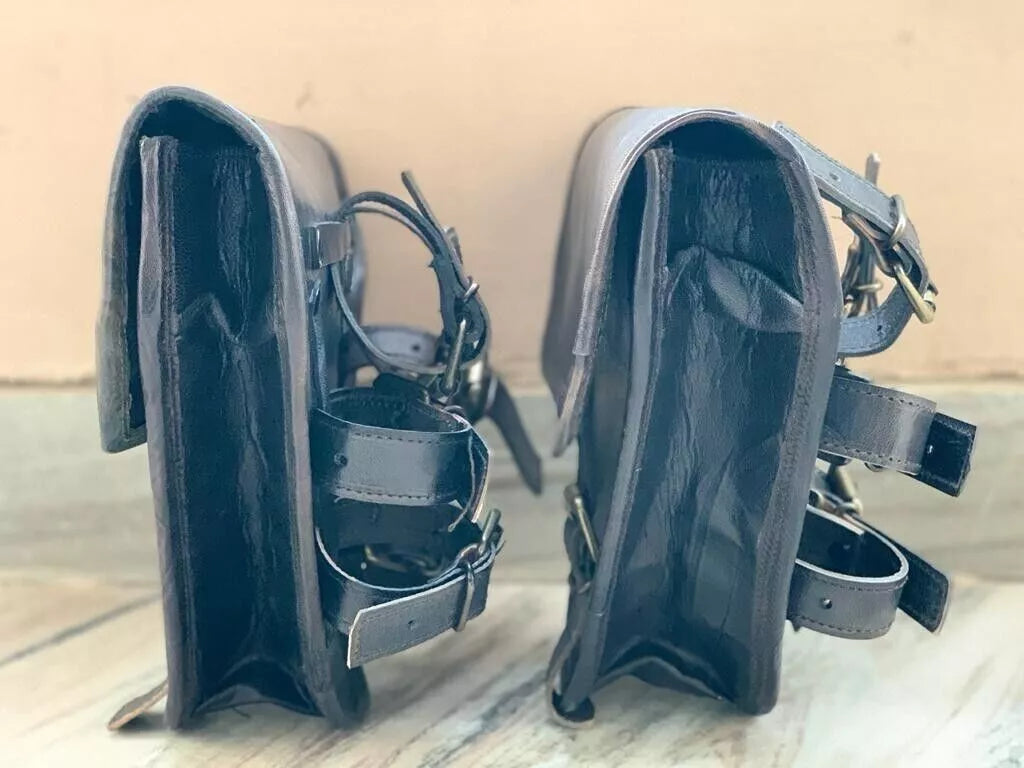 Designed for riders who require extra space while on the road, these leather saddle biker bags offer both functionality and a classic look. Whether mounted on a motorcycle or a bike, they provide ample room for carrying essentials while maintaining a vintage aesthetic.