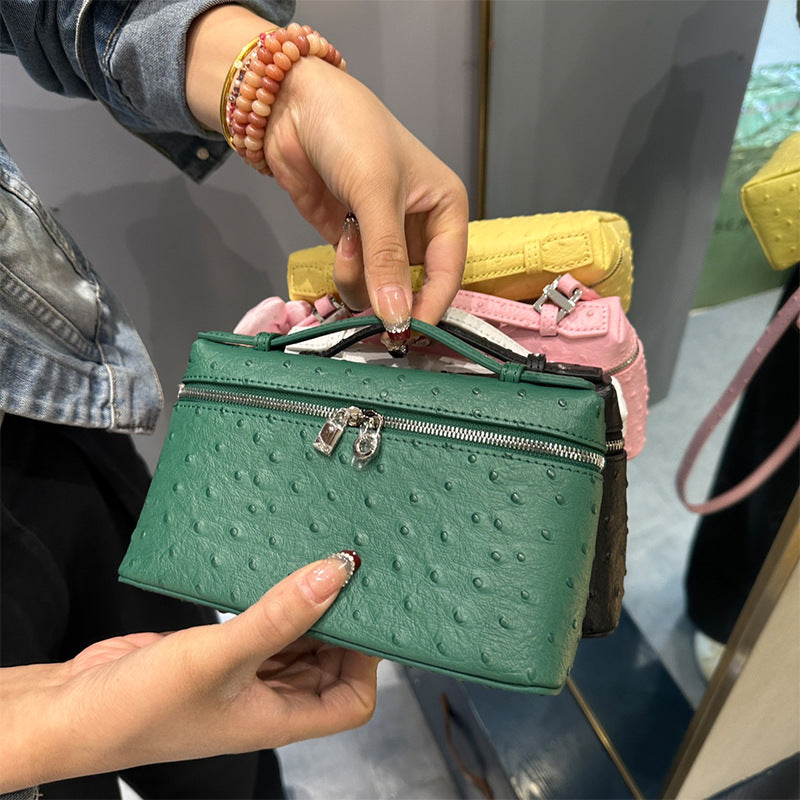 Women’s Genuine Leather Shoulder Bag – Small Ostrich Pattern Square Handbag