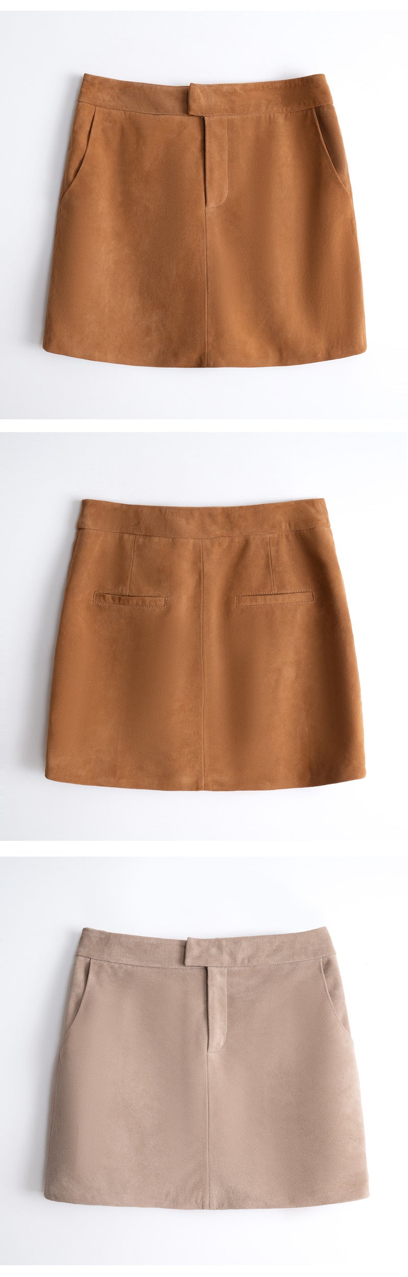 - Genuine goat suede leather skirt designed for spring and autumn wear