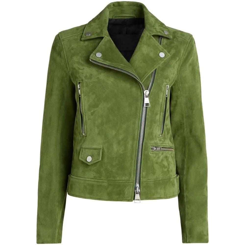 - Asymmetrical front zipper closure with premium silver-tone hardware for that classic biker edge