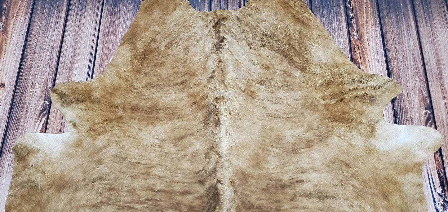 Consider this mostly beige-tan natural cowhide rug that is not only real but also incredibly soft and smooth - an ideal choice for high traffic areas or any type of cowhide upholstery. It will enhance the aesthetic appeal of your home office or rustic farmhouse. The Brazilian origin of this cow rug ensures its authenticity with hair on cow skin that's super soft and smooth, backed by suede leather finish. Such features make it versatile as floor decor, wall art or even furniture draping material. Its unique and exotic pattern is individually selected in each handpicked piece meant for living room display.