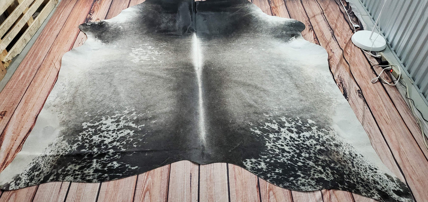 Grey White Natural Cowhide Rug 7.8ft x 7ft