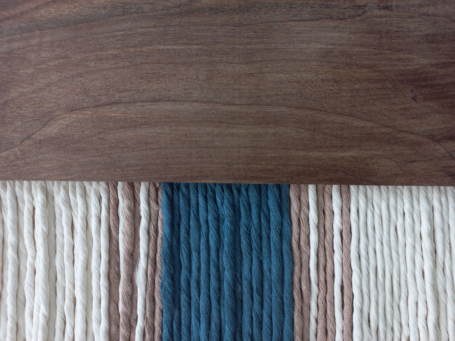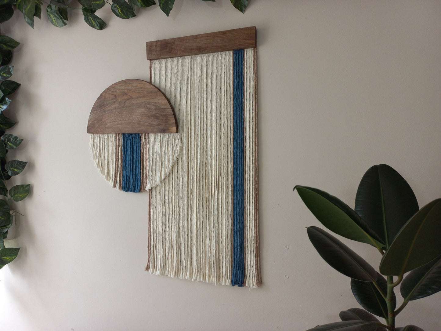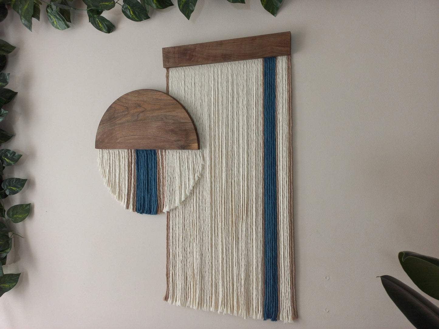 Each macrame wall hanging is meticulously handcrafted with love and care. This attention to detail is evident in the intricate patterns and the flawless finish of the pieces. The combination of the blue and white yarn with the natural walnut wood creates a harmonious and visually pleasing effect. These wall hangings are not just decorations but works of art that reflect the craftsmanship and passion of the artisan.