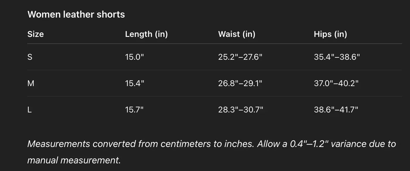- Leather short shorts length creates a sharp, modern silhouette