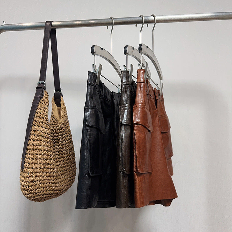 These leather shorts are tailored from genuine sheepskin to create the perfect high waisted black leather shorts for women — sleek, structured, and versatile for both workwear and leisure. The design includes bold leather shorts with pockets for women, balancing sophistication and functionality. Each pair ensures a refined fit and a waxed finish that highlights texture and quality. Ideal for pairing with heels, boots, or blazers, these women leather shorts deliver confidence and standout appeal in every setting — from meetings to weekend wear.