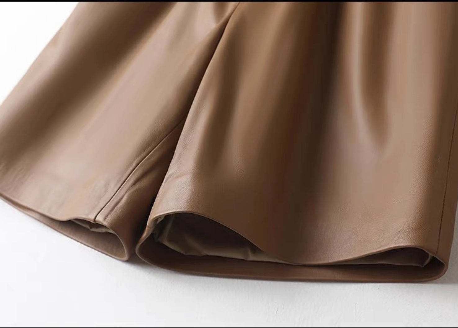 • Women wide leg leather shorts finished with clean stitching and refined seams