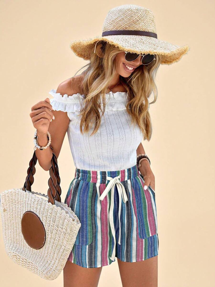 Stay cool and stylish this season with our high waisted striped cotton shorts women. Designed with a breathable cotton blend and multicolor vertical stripe beach shorts pattern, they’re perfect for sunny days. The summer drawstring casual lounge shorts style offers adjustable comfort, while the high-waist fit flatters your silhouette. Ideal for casual outings, beach walks, or relaxing at home, these striped shorts combine style, comfort, and versatility to keep you ready for every summer adventure.