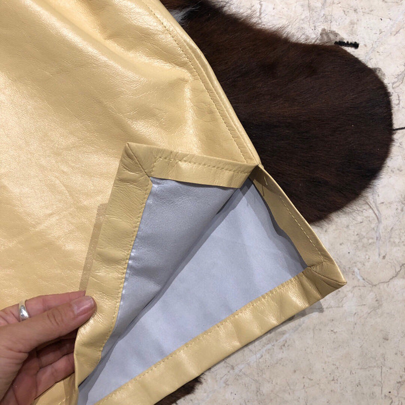 Women’s Genuine Lambskin Leather Shorts – High Waisted, Mid-Length, Wide Leg Fit