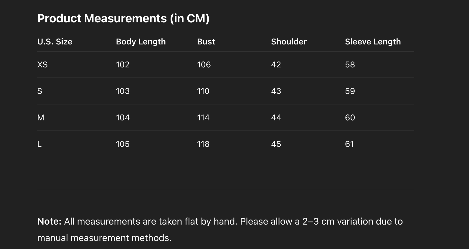 - Please select the correct size from the chart before placing your order