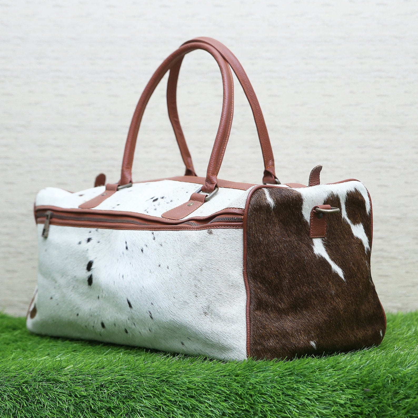 This stunning cowhide luggage bag comes in a large size, making it perfect for travelling, going to the gym and outdoor activities.