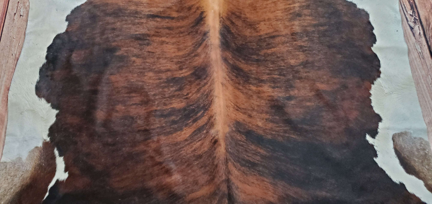 A very beautiful mahogany tricolor cowhide rug in large size, natural shade and hundred percent real.