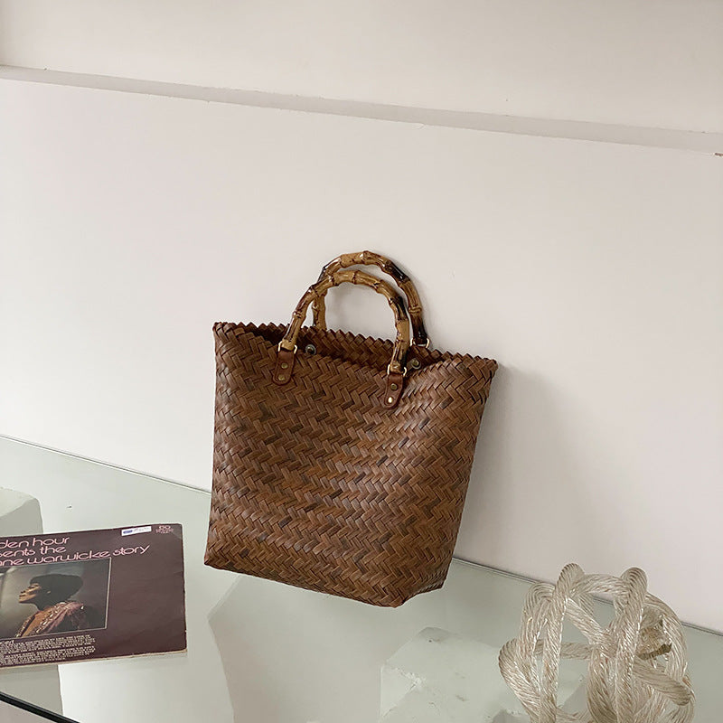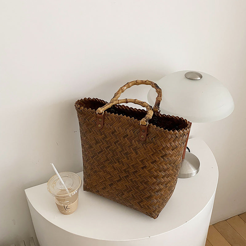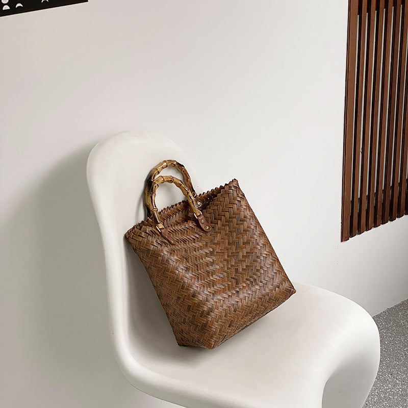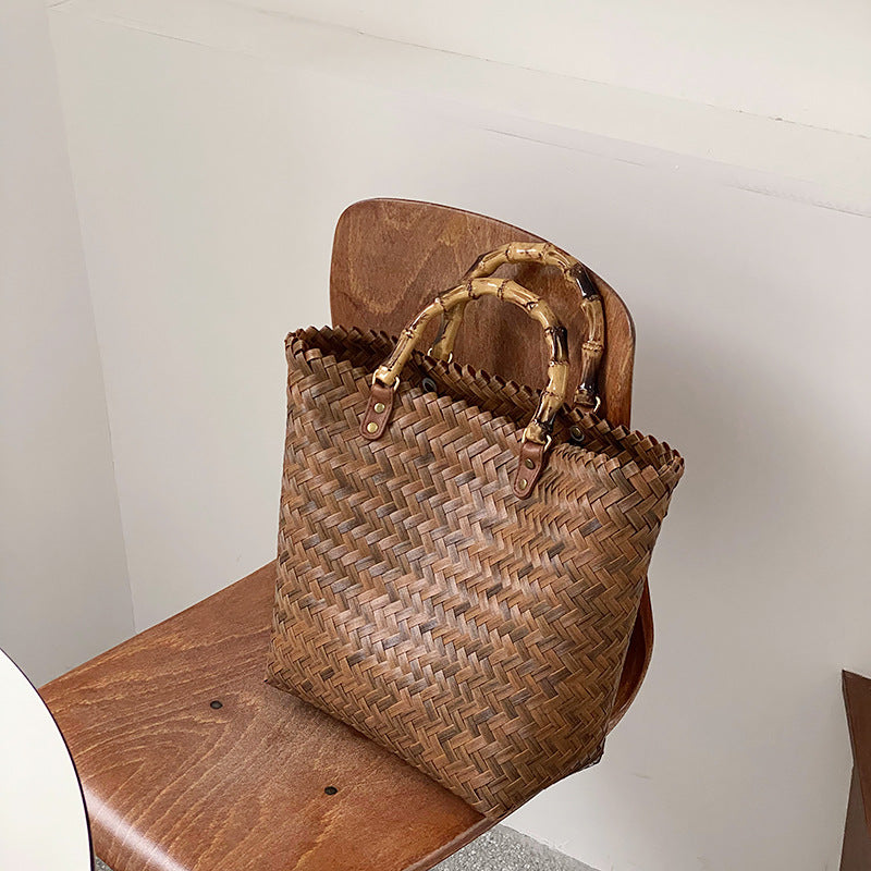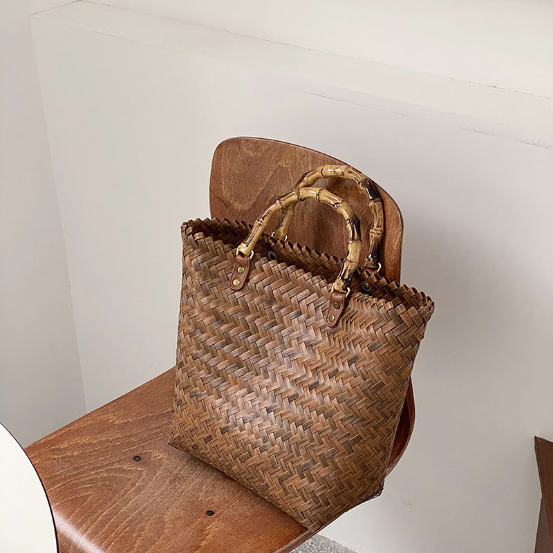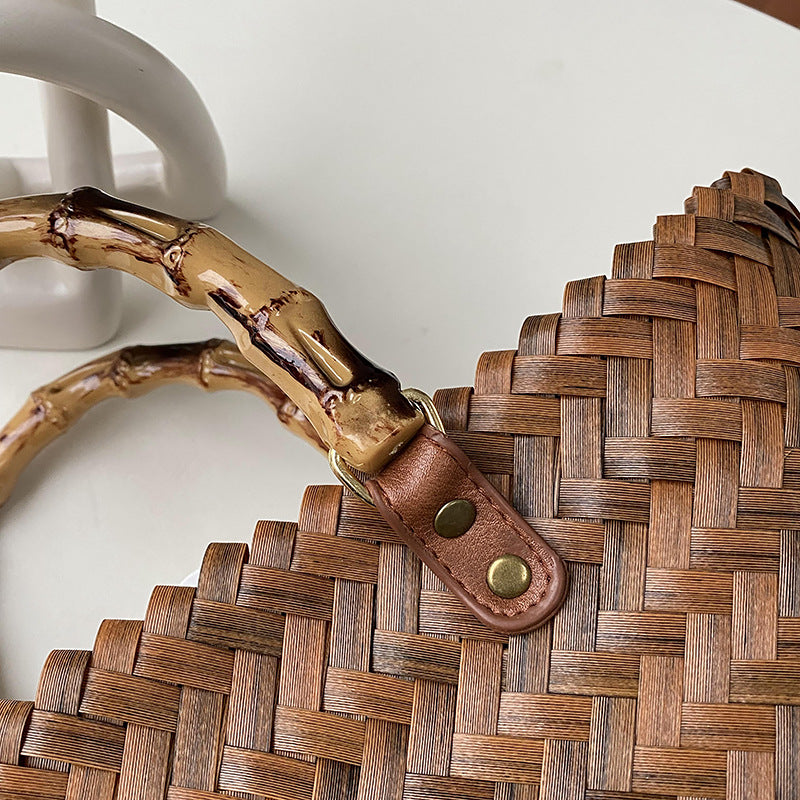 Handmade Rattan Tote Bag for Women – Bamboo Handle Summer Beach Purse