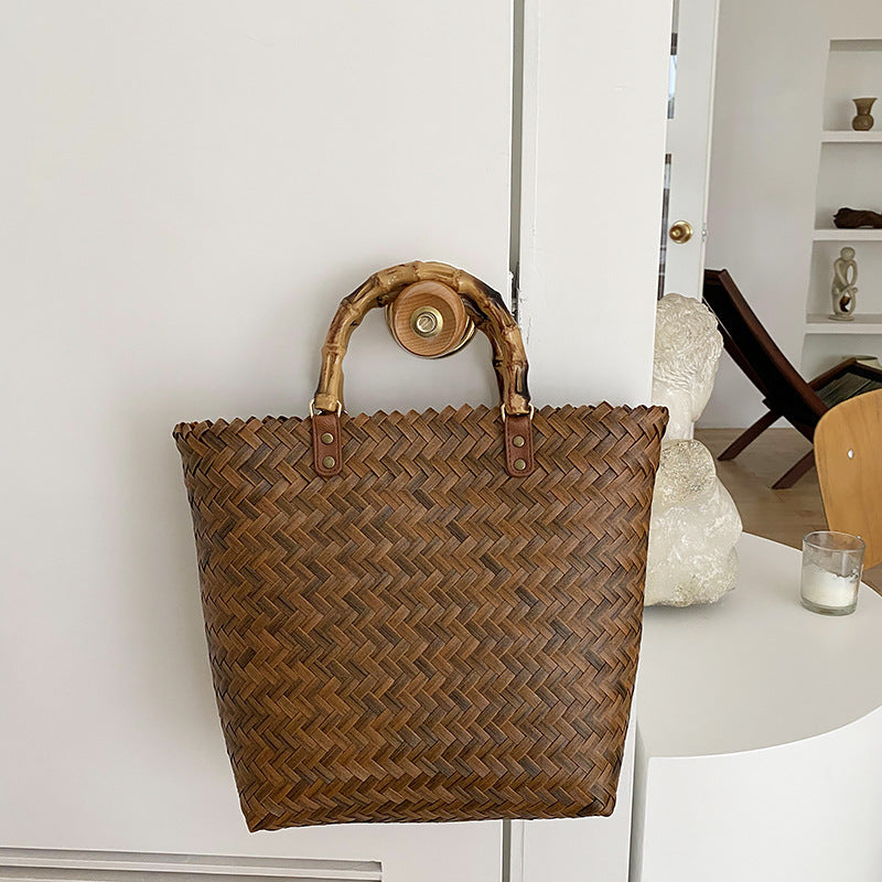 Large Rattan Beach Tote Bag with Bamboo Handles
