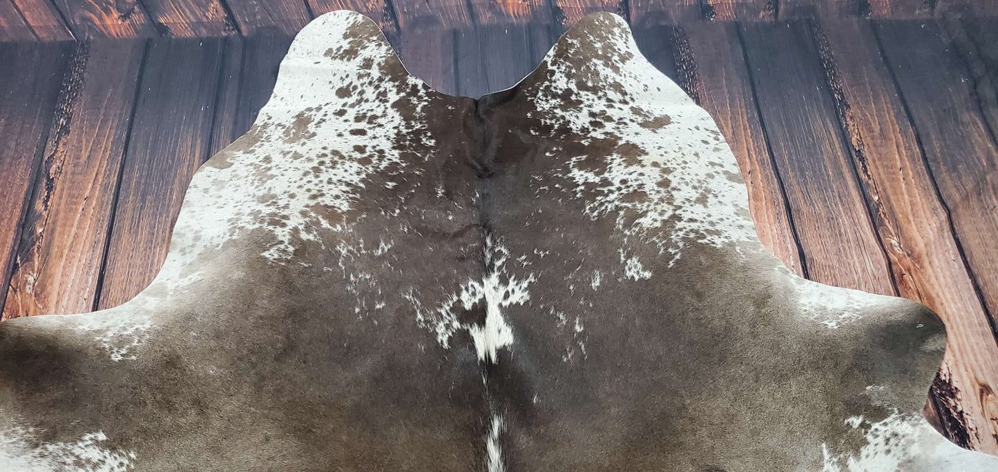 All my cowhide rugs are premium Brazilian, beautiful shine and perfect thickness. We hand picked each for its exotic patterns and markings. Like my all other cowhides this one is also unique and one of its kind, its mostly grey with beautiful tan in the background.