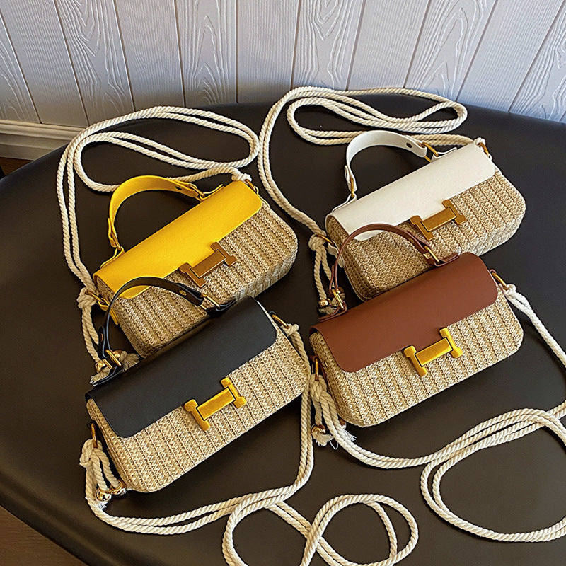 - Summer straw bags with rope straps that add texture and beach-ready style.