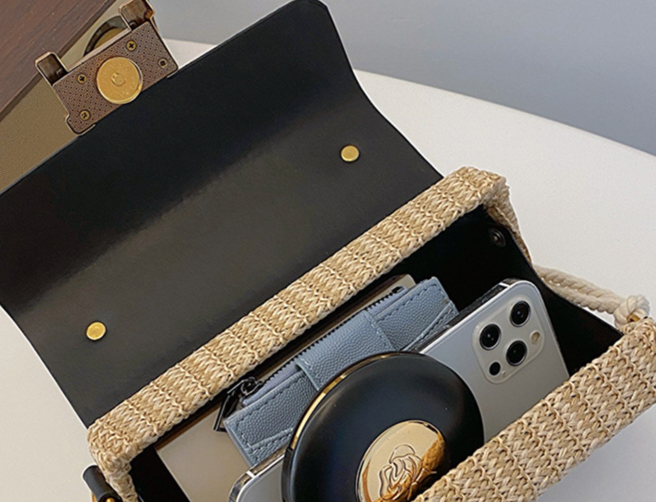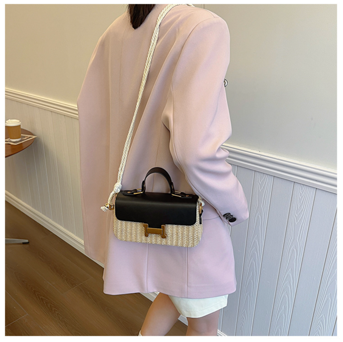 Step into summer with this black leather flap straw crossbody bag, crafted for women who love both style and function. Made from premium woven straw and accented with gold hardware, it’s the perfect accessory for beach days, city strolls, or weekend getaways. The rope strap offers comfortable wear as a shoulder or crossbody bag, while the secure flap keeps your essentials protected. With its lightweight build and compact size, this straw purse transitions seamlessly from day to night. A must-have for those seeking the best straw handbags for summer, straw purses for women, and woven crossbody bags that combine seasonal appeal with lasting quality.