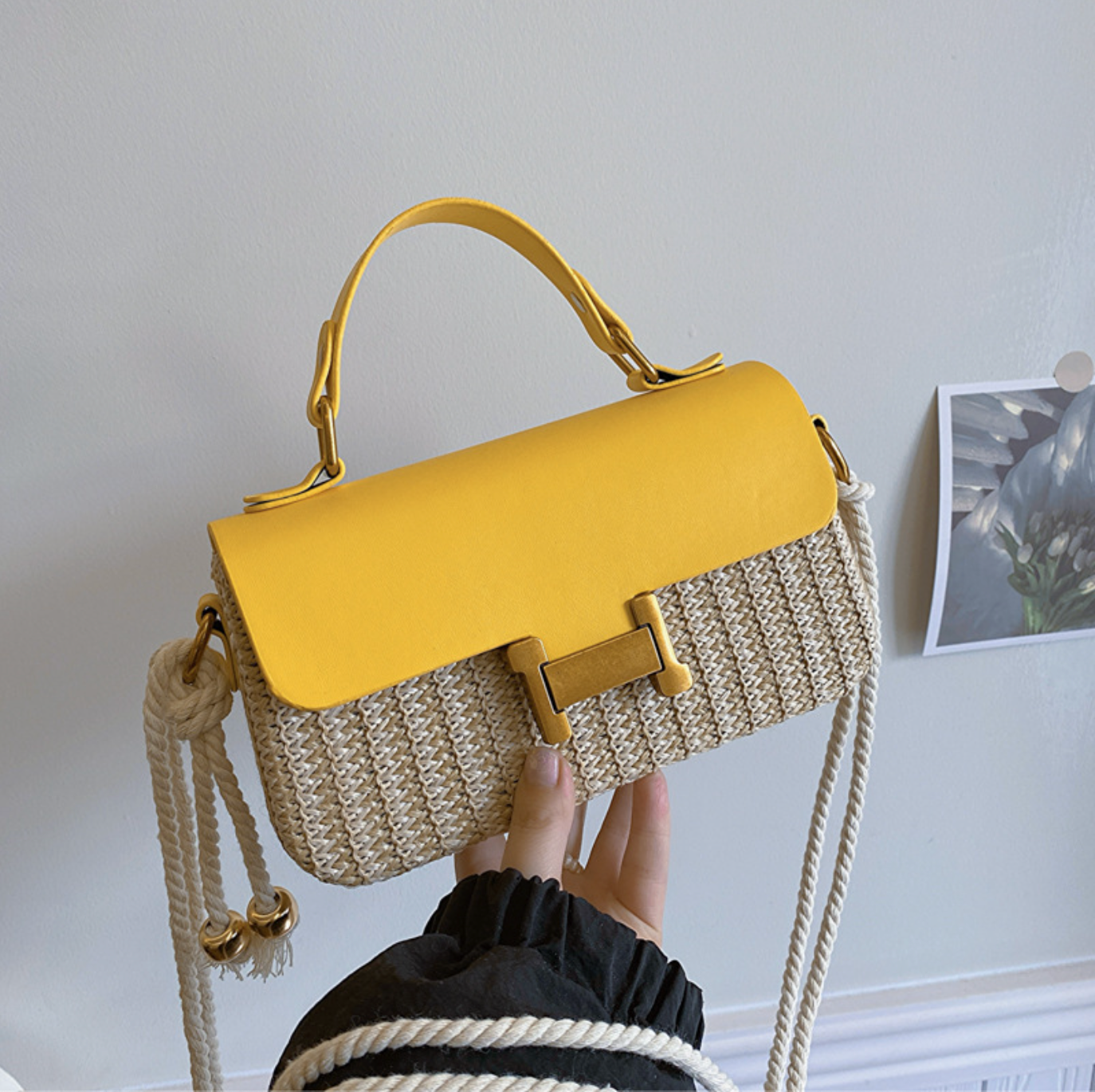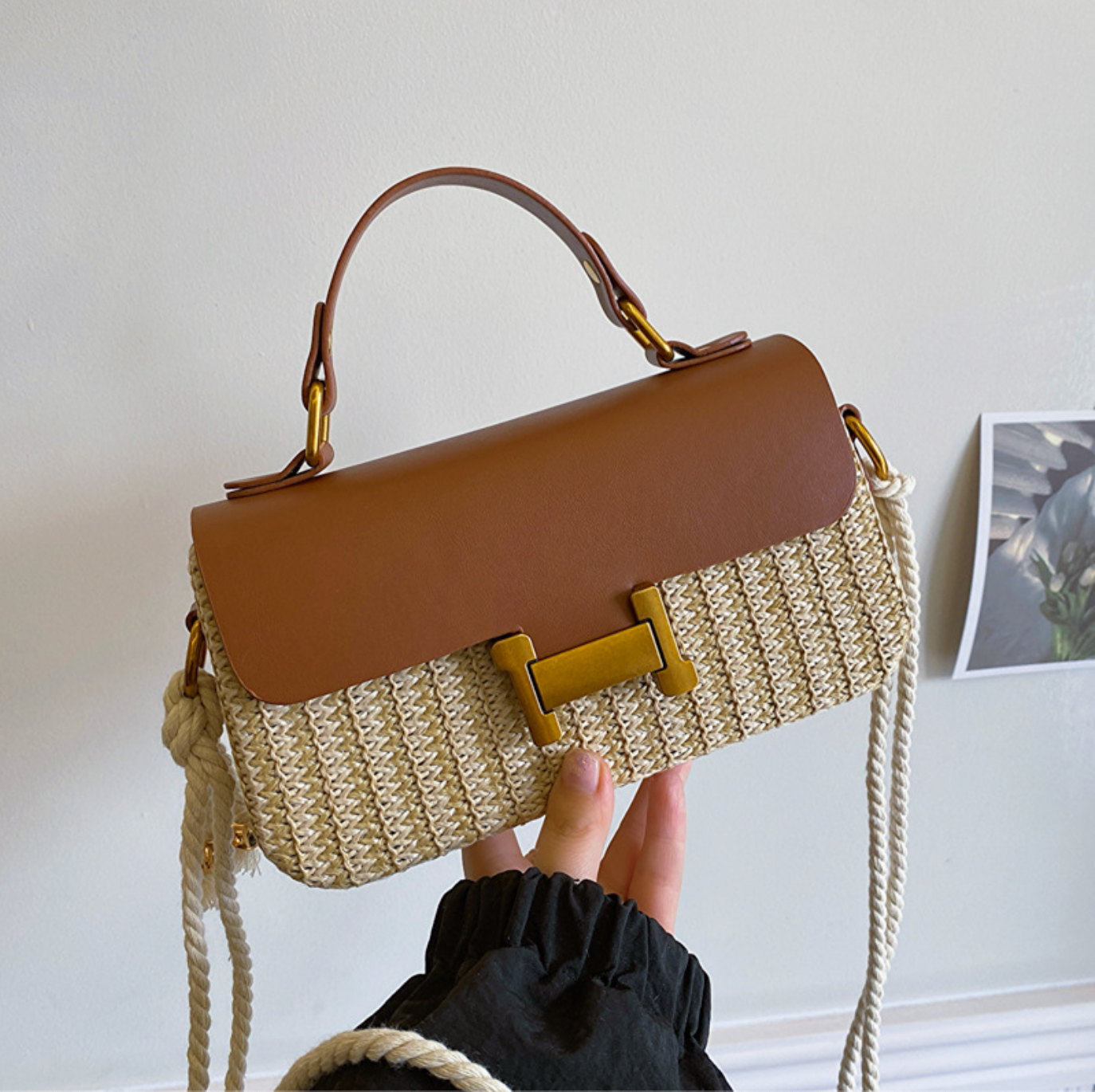 Straw Summer Crossbody Purse with Leather Flap Beach Ready