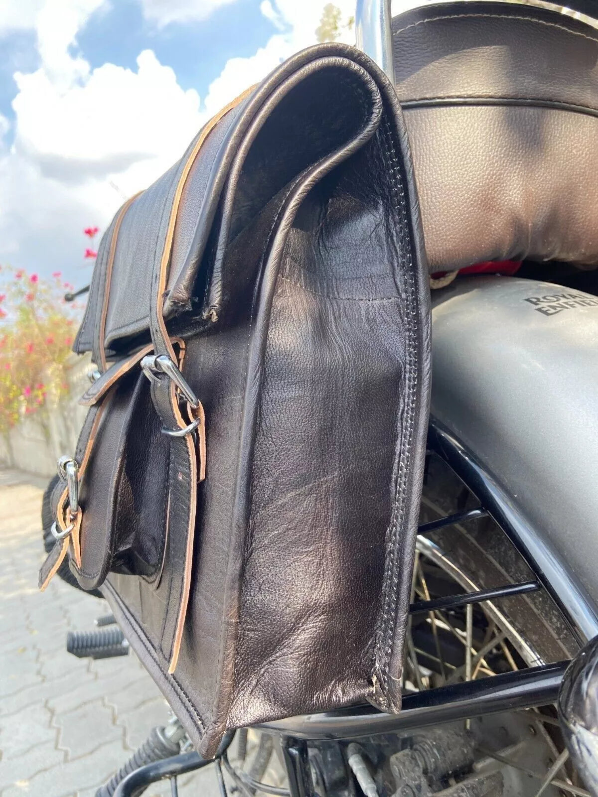 A bicycle bag leather option should provide space, a secure fit, and a balanced design. This leather saddle bag motorcycle meets all three, offering an easy-to-mount structure with enough room for daily carry items. The buckle straps enhance security, while the stitching ensures long-term use.