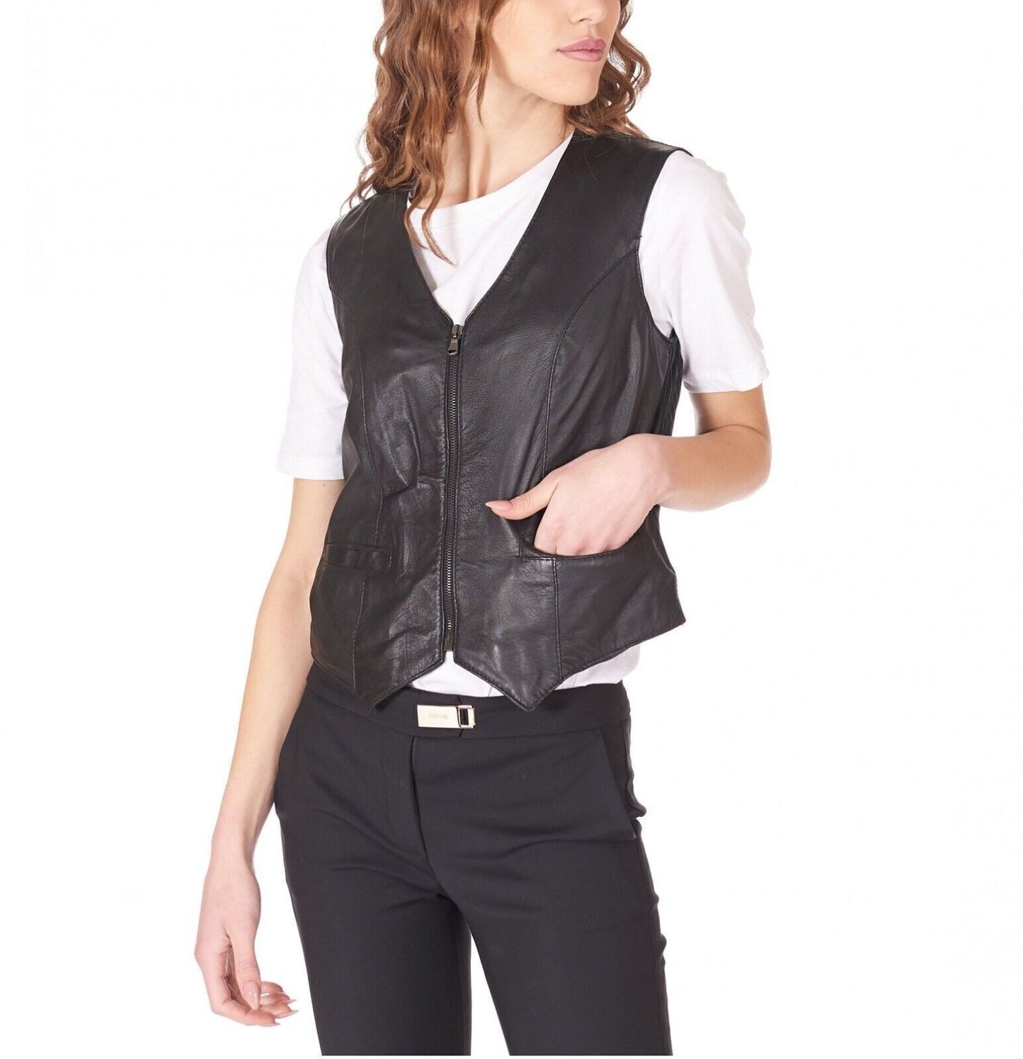 Black Leather Vest for Women Genuine Sleeveless Zip-Up Waistcoat