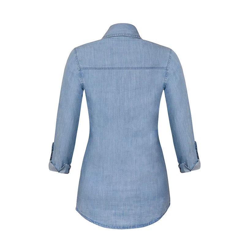 Pair this women jeans shirt with white trousers for a fresh summer look, or style it with black leggings and boots during transitional months. The chest flap pockets and clean lines make this women shirt easy to accessorize with simple jewelry or bags. Lightweight and easy to move in, the denim fabric works across seasons without adding bulk. Whether you're reaching for a go-to outfit or building a new capsule closet, this women denim shirt serves as a dependable base. It blends seamlessly with everyday jeans, sneakers, or sandals—ideal for layering or standalone wear.